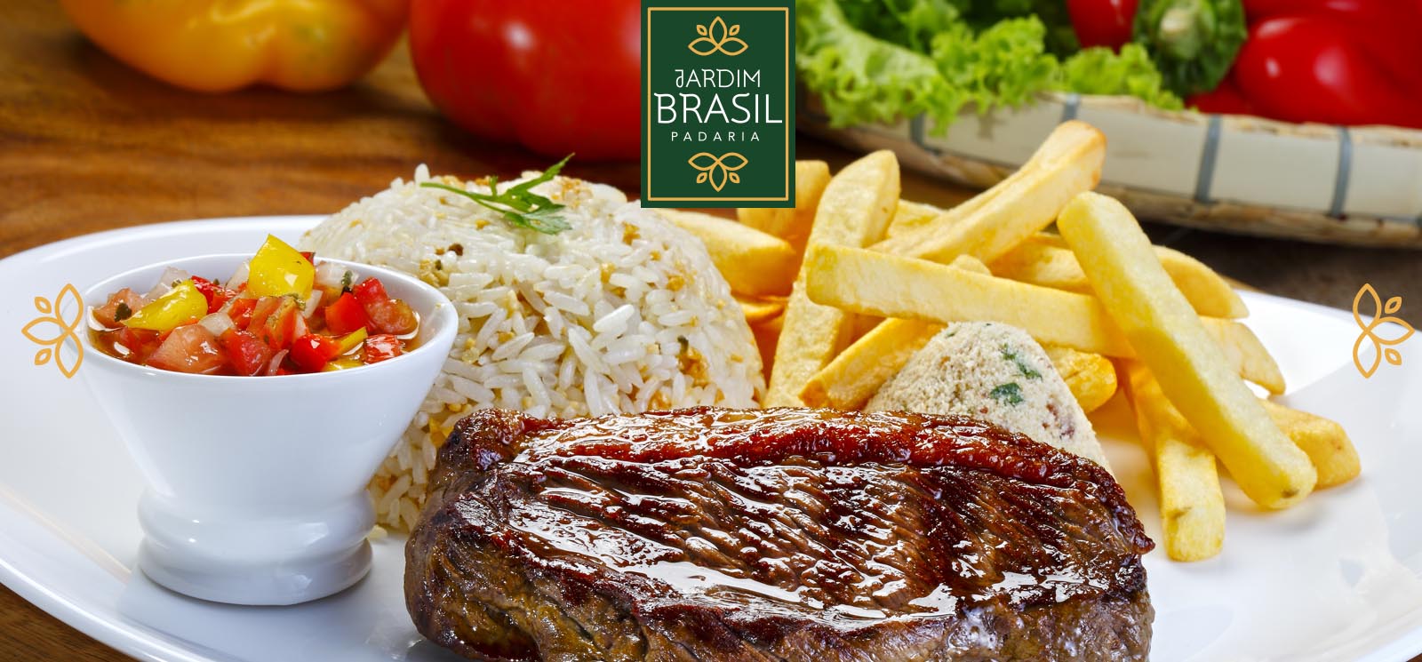 Monte seu Prato: Escolha seu Grelhado e 3 Acompanhamentos (arroz, fritas, salada, feijão, vinagrete, farofa)